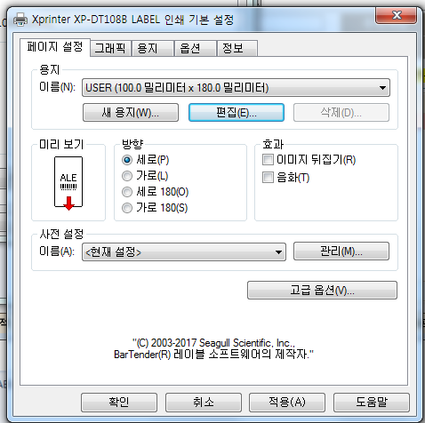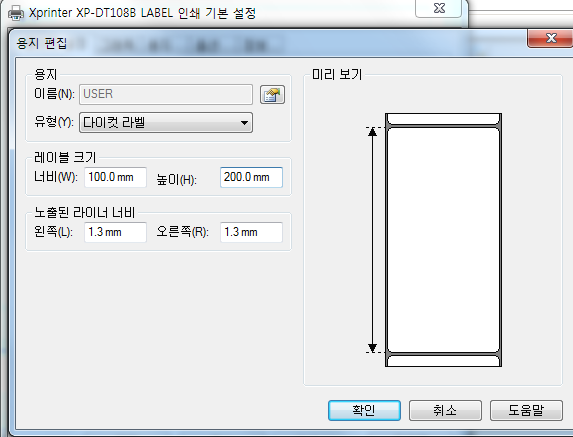 일반 - 기본설정 - 페이지설정 - 편집에 들어가서 180mm로 설정된 높이를 200mm로 변경해주면 된다.